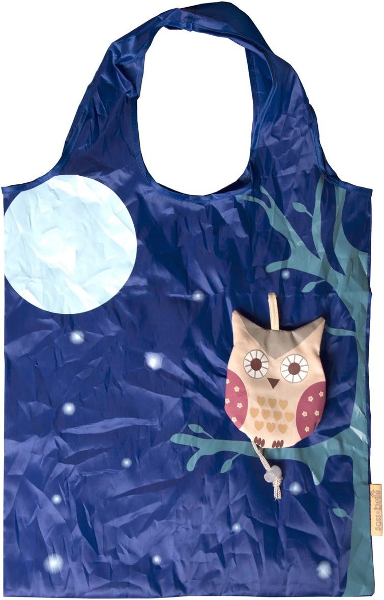 RJB Owl Foldable Shopping Bag, Fabric, Blue, 8.8 x 8.4 x 5.2 cm